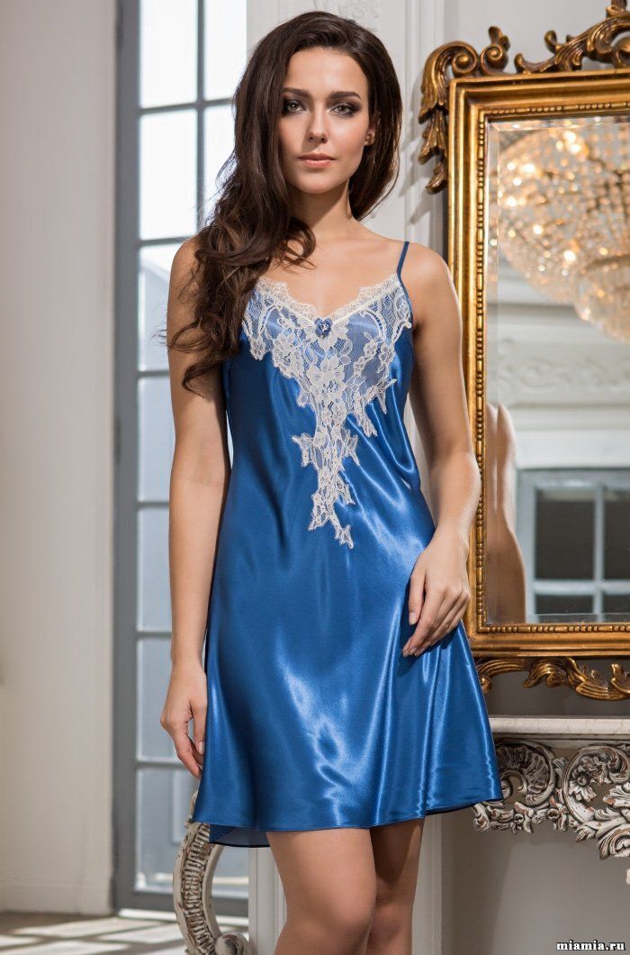 A short dressing gown is made of plain vibrant mixed silk fabric with fantastic wide lace.