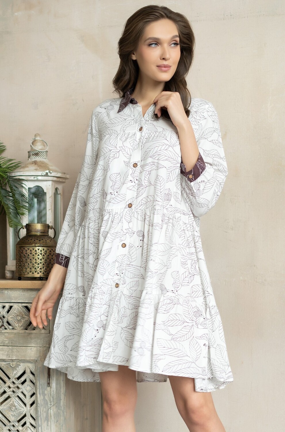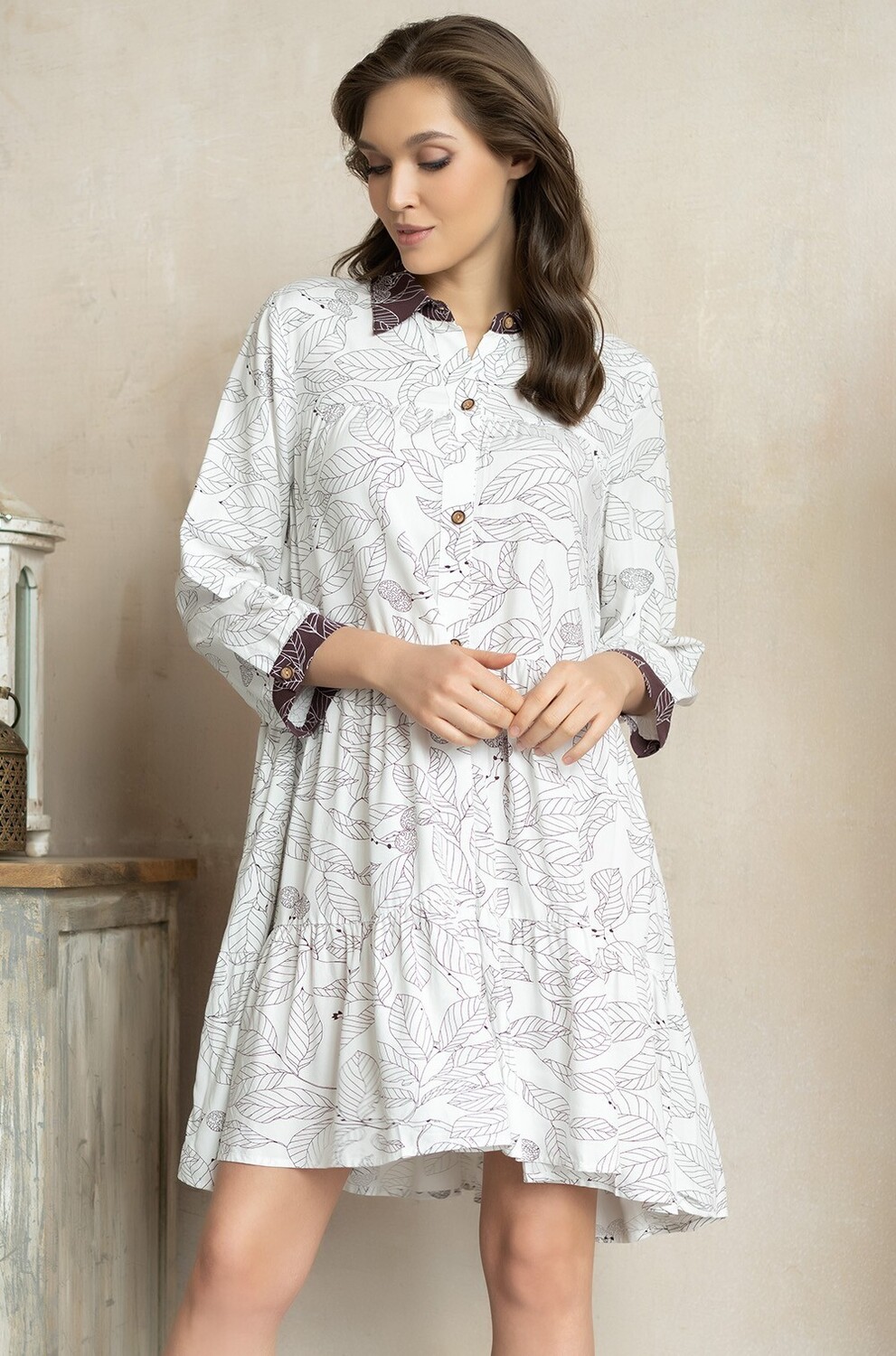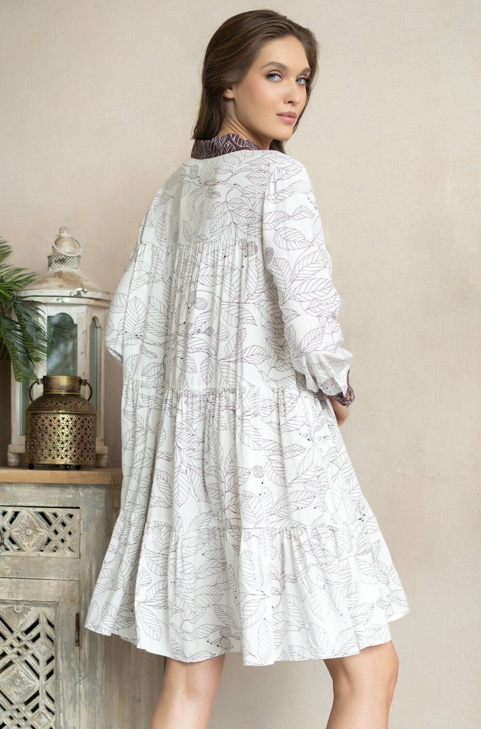 Mia-Amore shirt with central button fastening, 3/4 sleeves, made of light printed viscose. This loose boho tiered design has already become a favorite in many of our collections. The flying silhouette will decorate any figure. The cuffs and collar are made of dark companion.